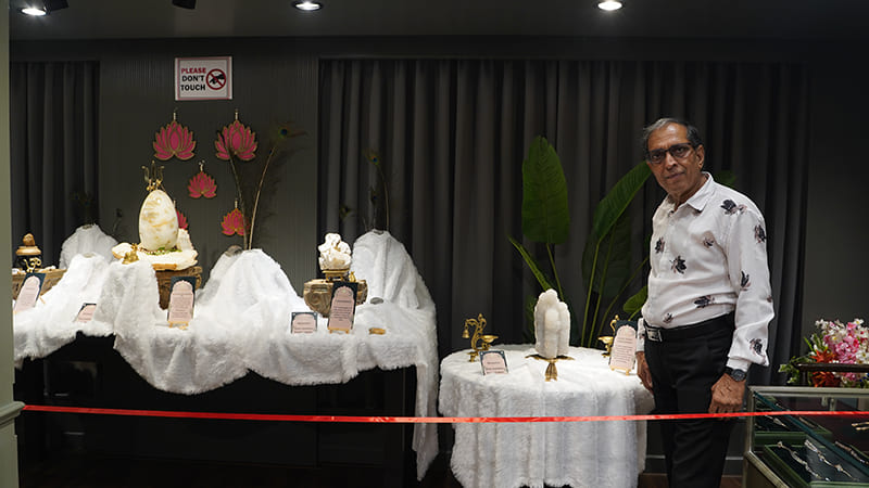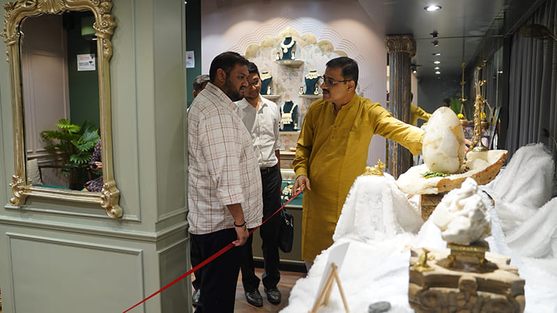 During this prosperous month of Purshottam , we showcased an amazing creation of nature. We had 5 naturally mined idols that held decades of history and divine energy. They are the existence of their kind in the entire world. These naturally mined idols included Quartz Shimmering Vartavinayaka, Om Ganesha, Shivlinga with Yoni of crystal, 7TRUNK Ganesha of white crystal, Tirupati Balaji of Rhinestone