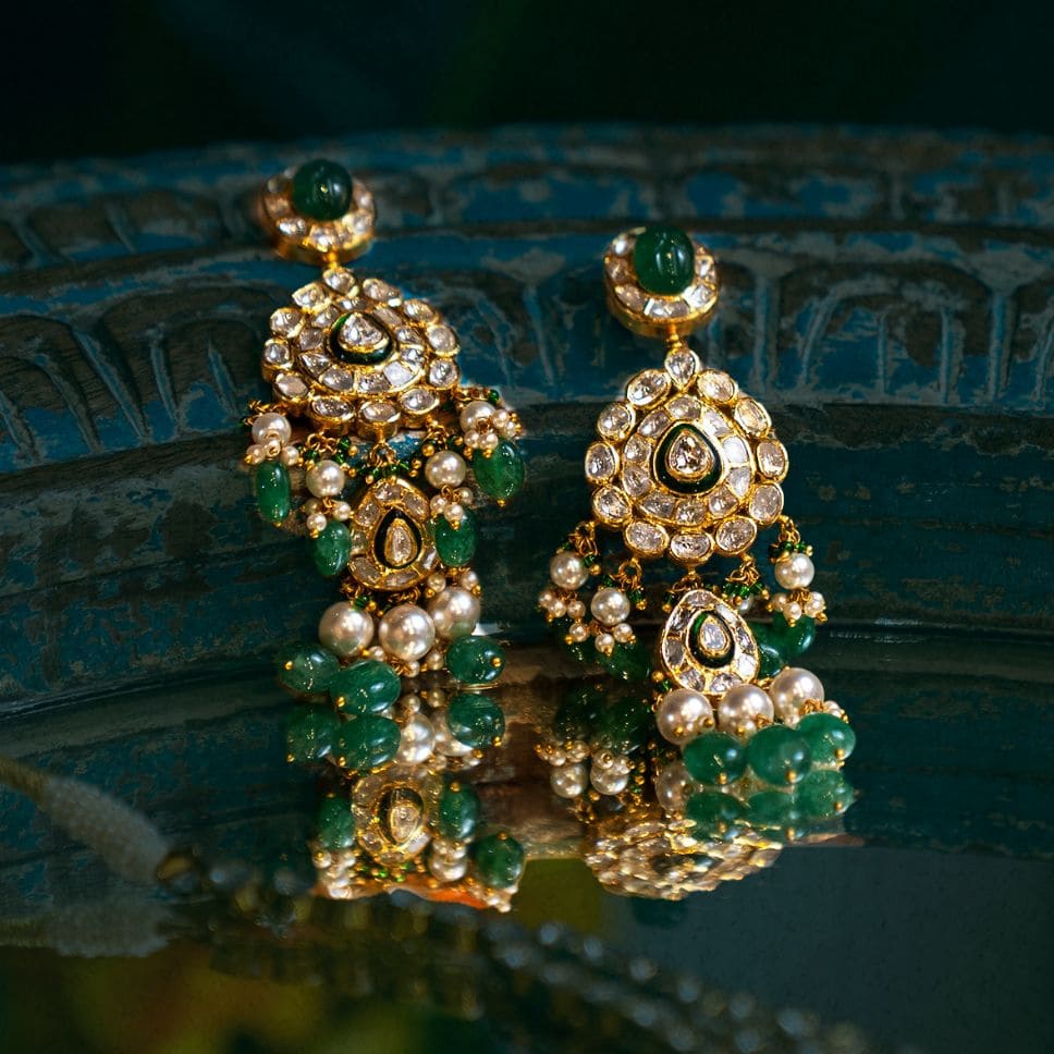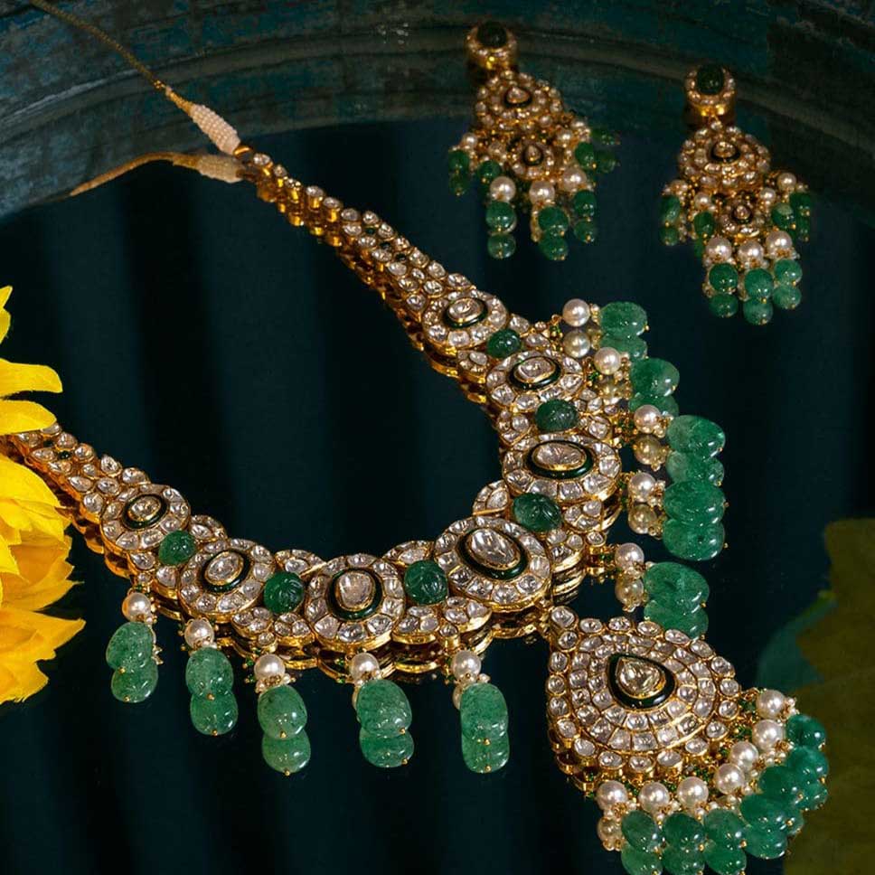 Elevate your style with our stunning jadau necklace set, adorned with precious diamonds.