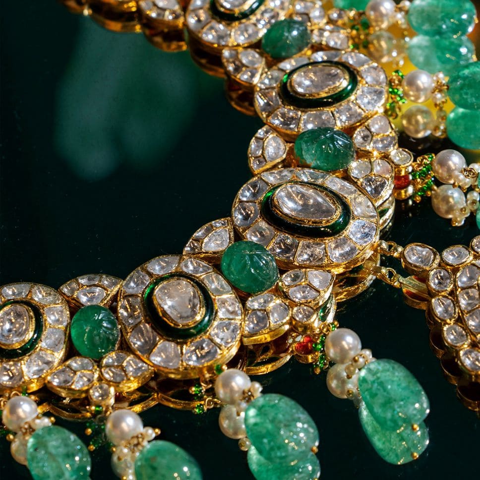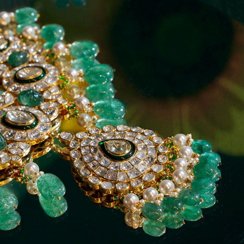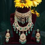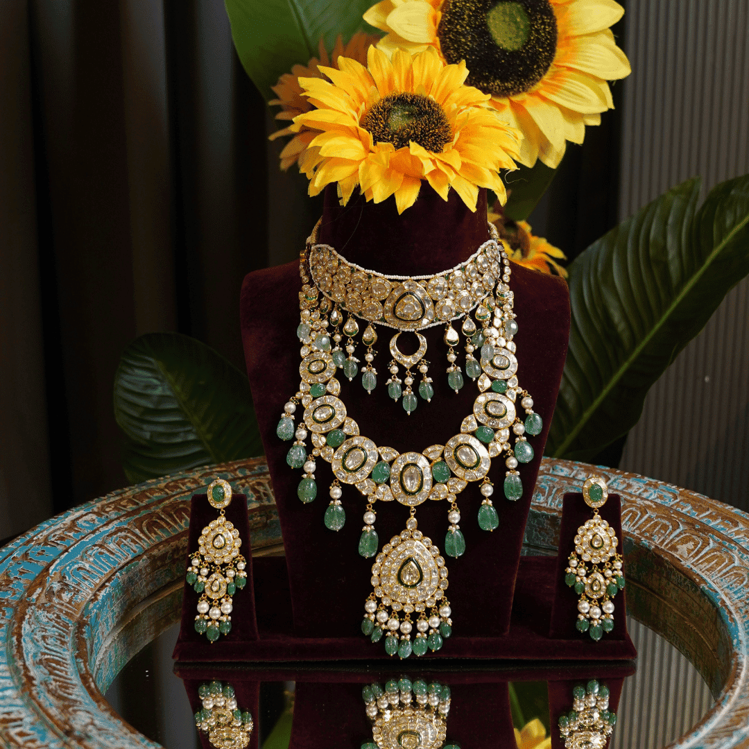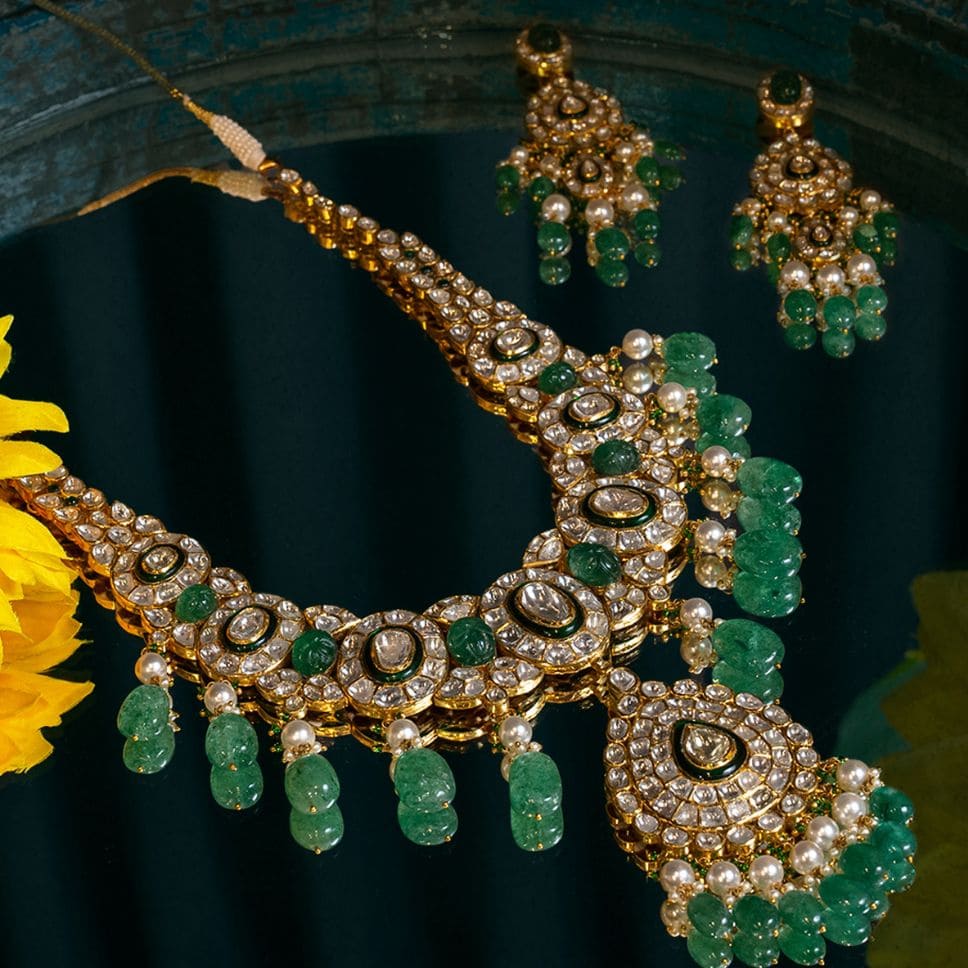 Experience the perfect blend of tradition and modern style with our dazzling jadau necklace and earrings set.