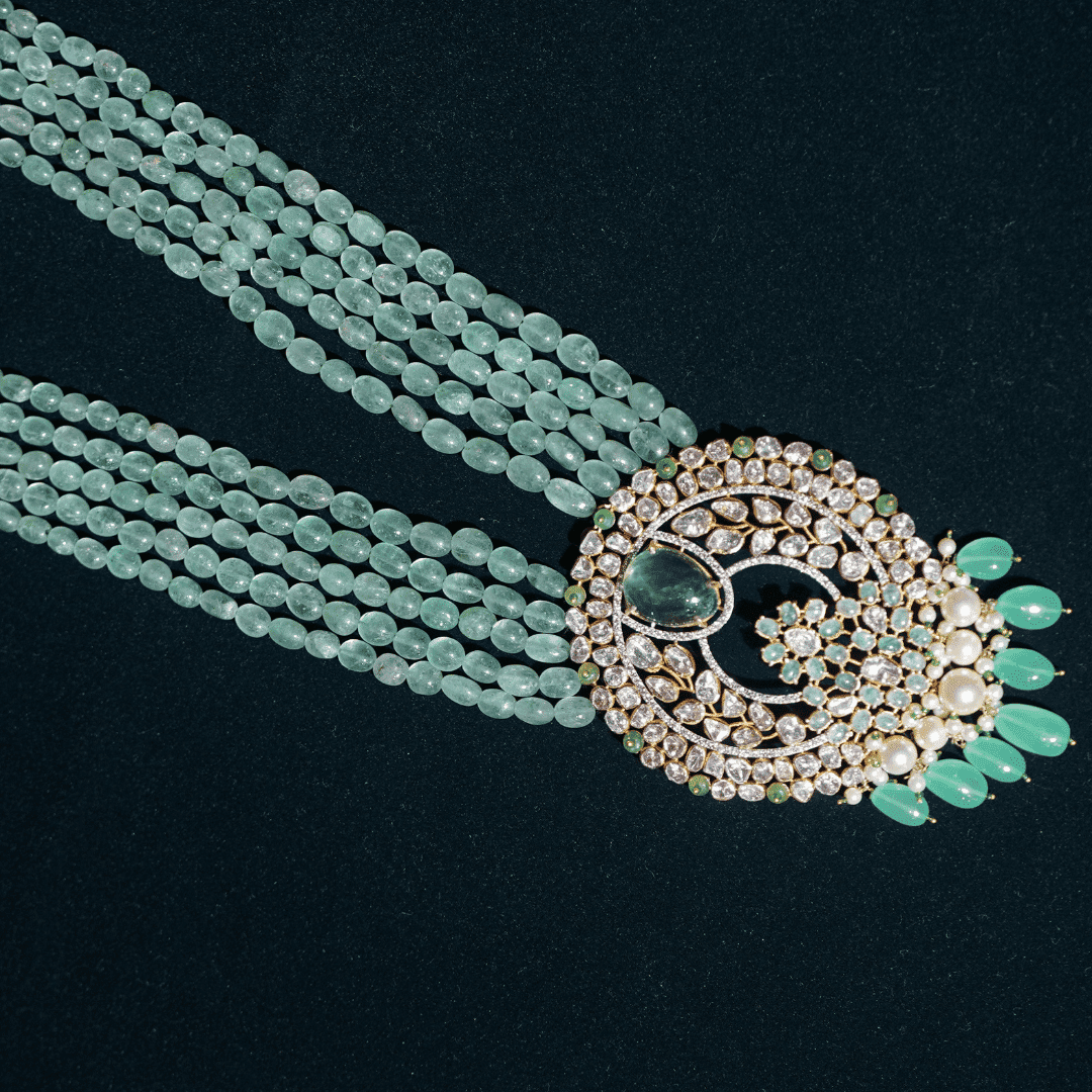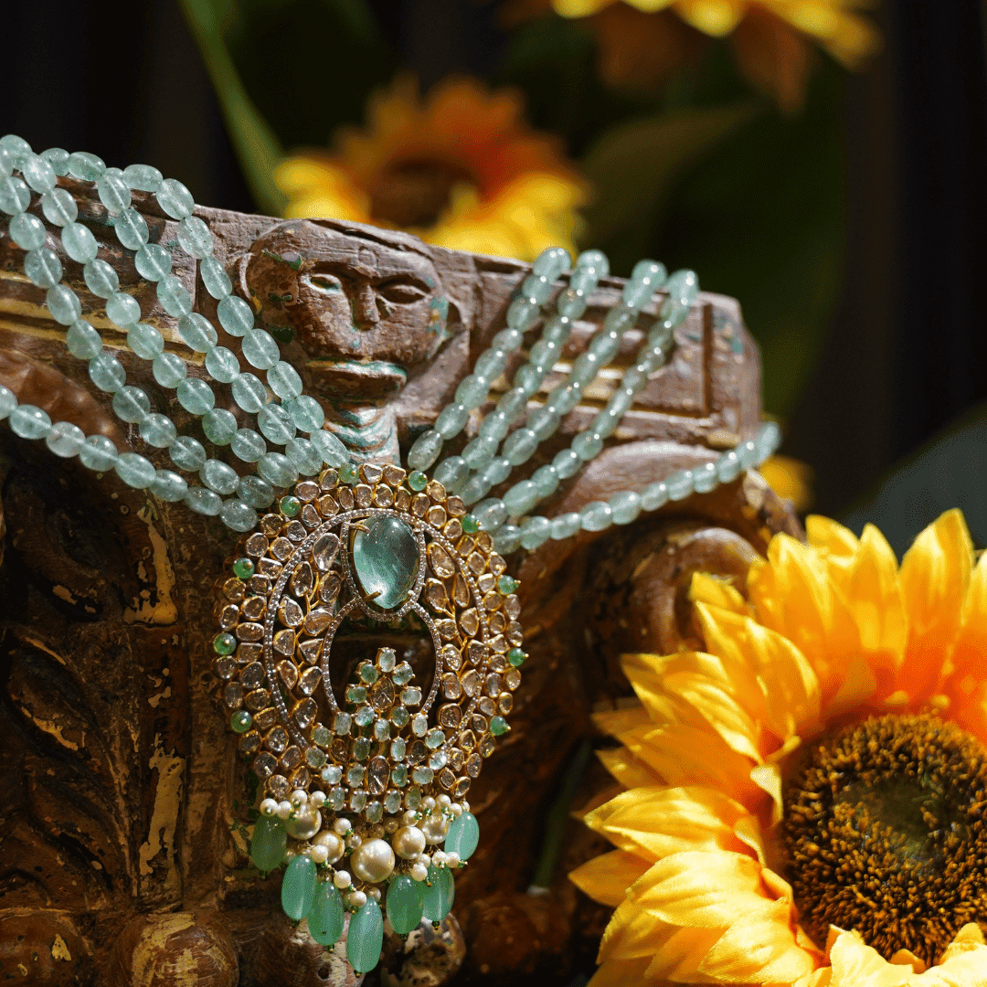 Experience the perfect blend of tradition and modern style with our dazzling jadau necklace and earrings set.