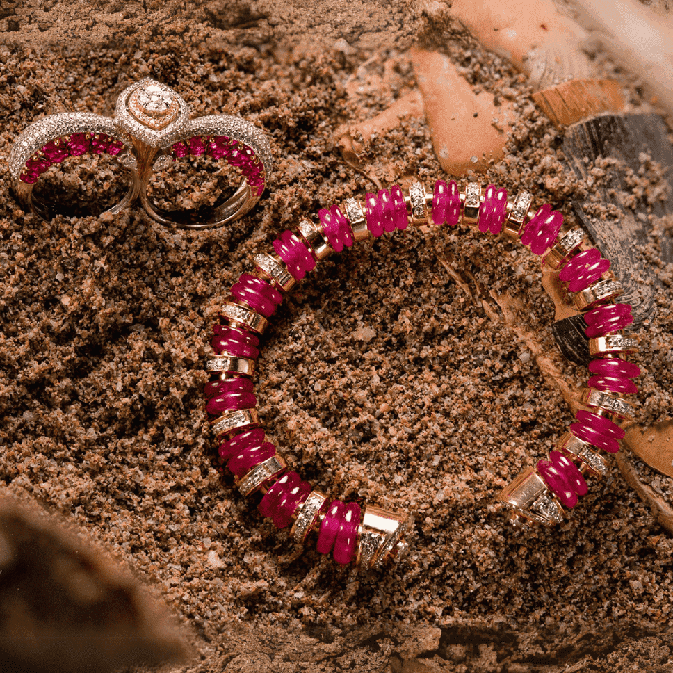 Bracelet : 2.00ct diamond and 75.15ct ruby beads