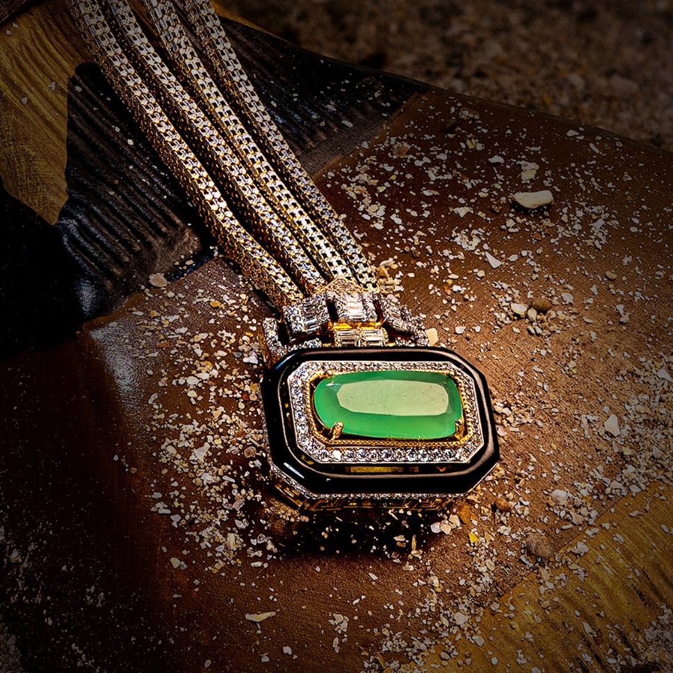 Featuring a vibrant 7.12ct emerald centerpiece, symbolizing wisdom and peace, perfectly complemented by 1.80ct diamonds.