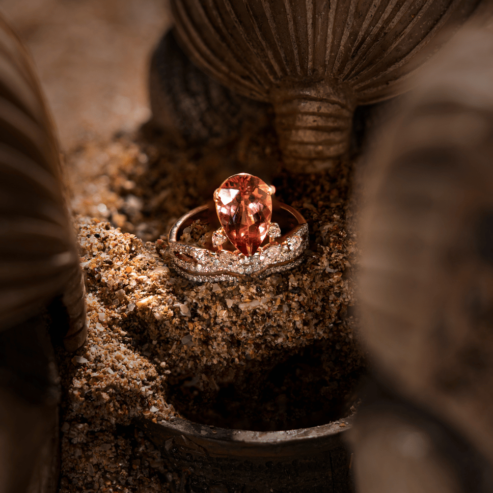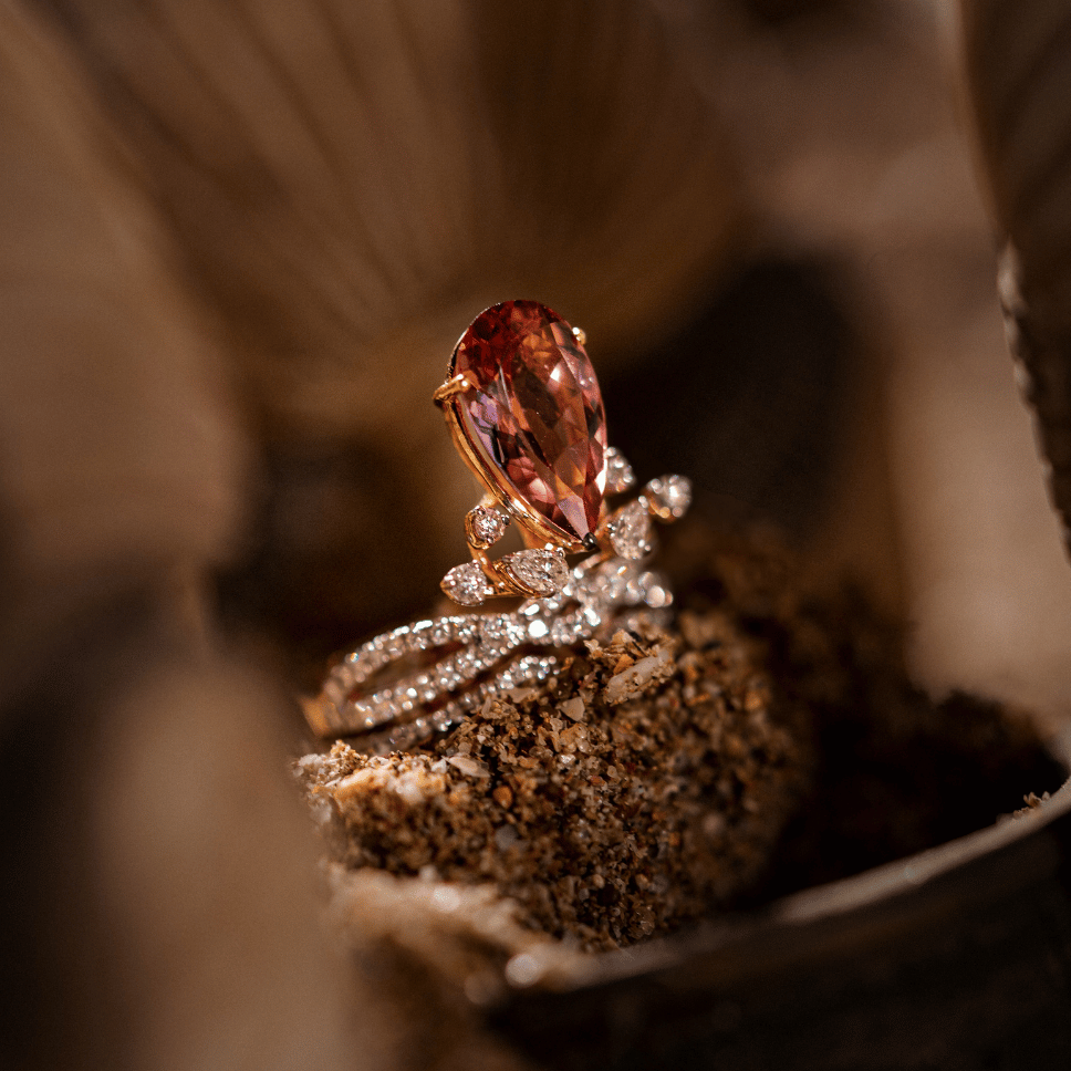 Featuring a 2.45ct pear-shaped pink tourmaline and 0.57ct diamond, this masterpiece embodies elegance and sophistication.